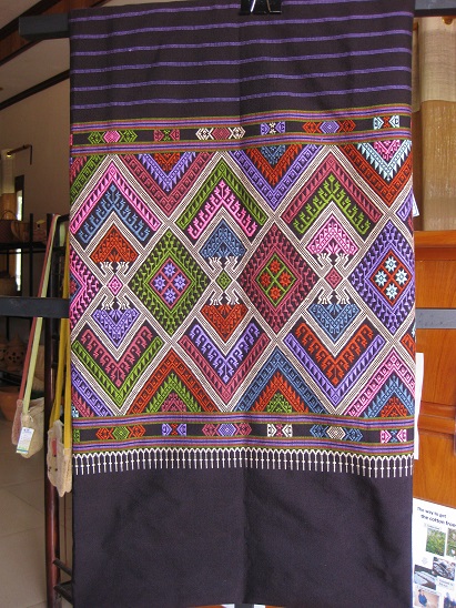ラオスで人口の大きな割合を占めている「ラオ・ルン族」は、布の下部に柄が配されます。