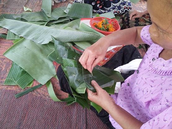 私が手伝えるのは、バナナの葉を拭いてきれいにすることくらい。