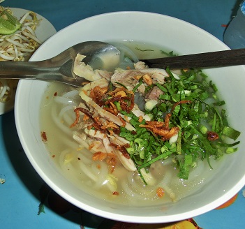 鶏がらスープに、米粉の麺。任地オリジナルのものもあり、それがおいしい。