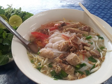 ベトナムで言うフォー。薄めの味で出てくるので、テーブルの上の調味料で自分好みに味をカスタマイズさせる。理想の味を出せたときには、達成感を得られる。