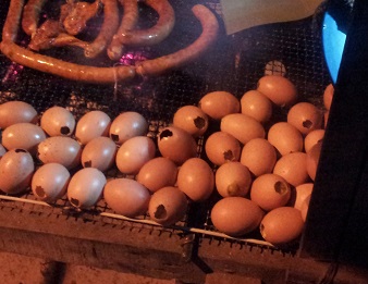 卵が焼かれている。ゆで卵のようなものを想像していると、茶碗蒸しのような感じに中身が混ぜられている。