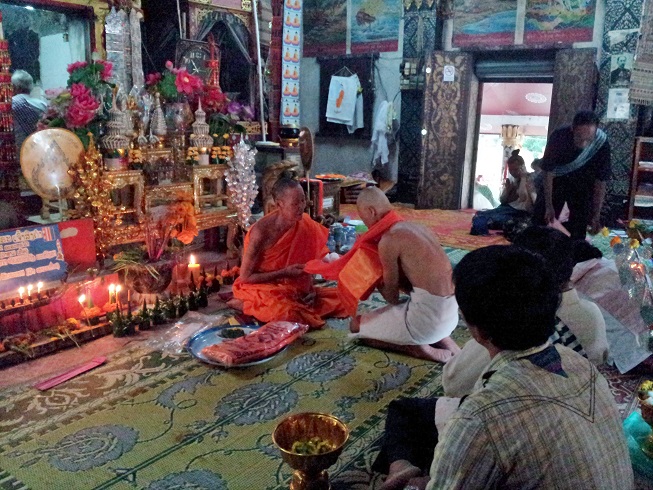 ウドムサイでお世話になっている家族の親族の一人が出家をするということで、その儀式に同席させていただきました。