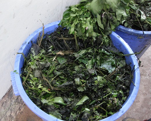 こうすることで、藍の色素の配糖体(インジカン)と酵素が溶け出てくるそうです。
