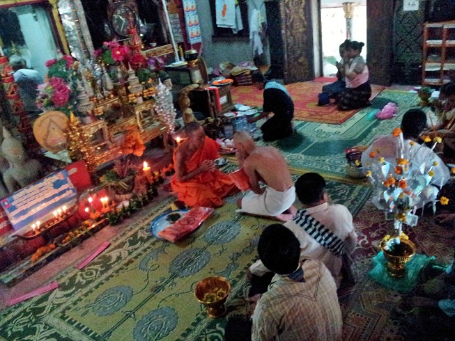 ウドムサイでお世話になっている家族の親族の一人が出家をするということで、その儀式に同席させていただきました。