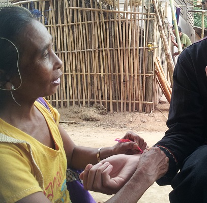 今回は、お母さんたち自ら手首に巻く糸を編みこんでくれました。