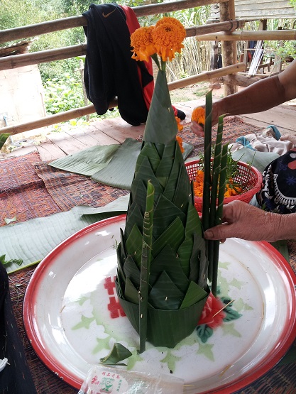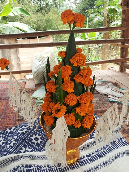 バーシーに使う、写真中央のパー・クワンと呼ばれる飾り(捧げもの)。