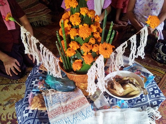 ありがたいことに、お母さんたちがラオスの伝統的な儀式「マッド・ケーン」をやってくれると言ってくれました。