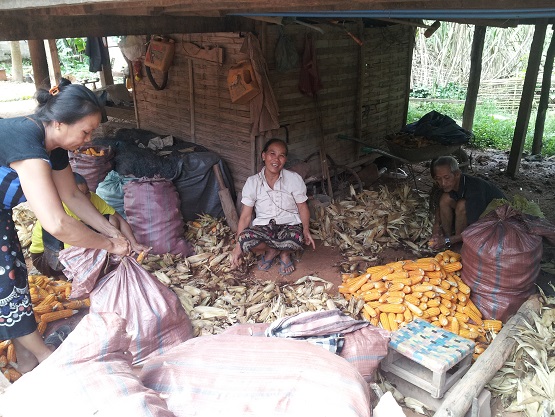 最後にお母さんと一緒にトウモロコシの皮をずっと剥いてきました。