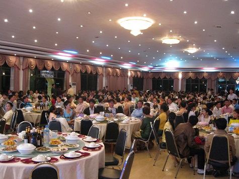 この結婚式のパーティー、セレモニー会場を借りるだけあって、すごい数の人が参加します。だいたい1,000人から2,000人くらいだとか。びっくり!!