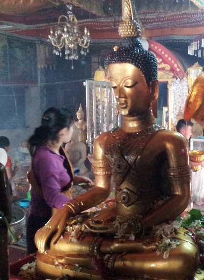 (この三大仏というのは、大きさではなく、格式の高さが3本の指に入るという意味で、ルアンパバーンのパバーン仏、ビエンチャンのパケオ仏(タイに持ち去られてしまったというエメラルド仏)と並び、人々に崇められています。お寺の名前もこれに由来し、「シンカム仏のお寺」というのがお寺の名前です。)