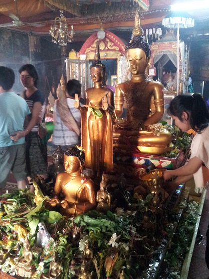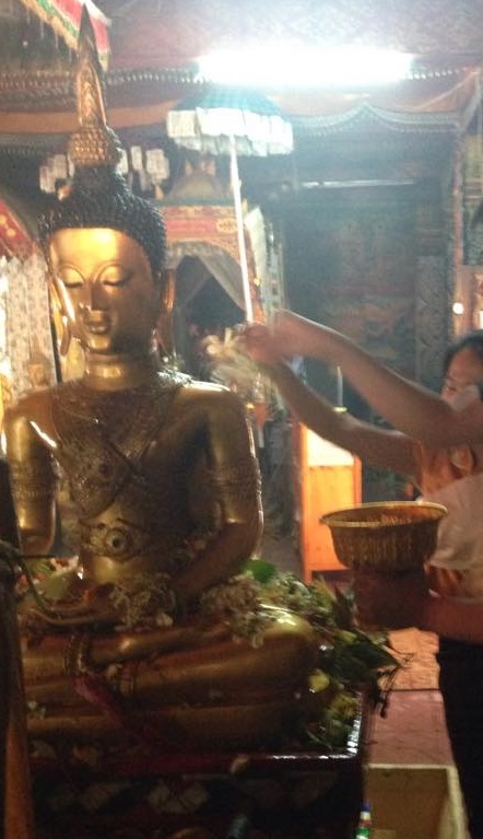 そして、お寺の中に入り、シンカム仏を始めとした仏像に水かけを行います。