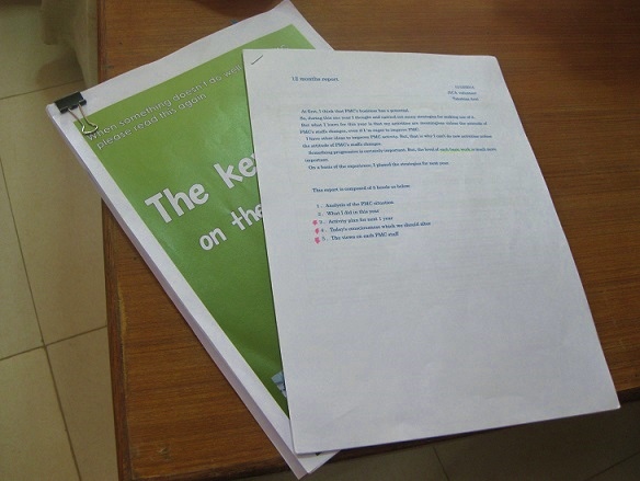 ※JICA事務所への12カ月レポートは期限内に提出しており、今回は配属先に対するものです。
