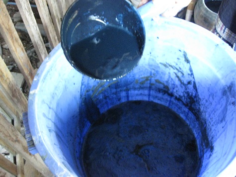 自然素材によって染色が行われる伝統の残るウドムサイの藍染。