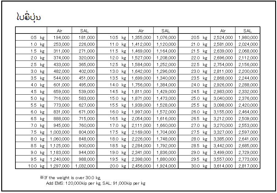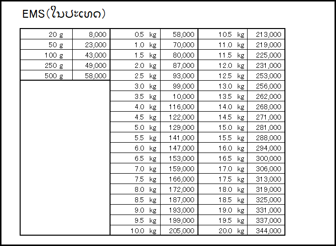 ラオスのEMS料金をまとめてみました。