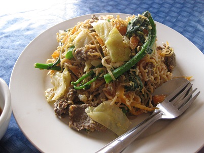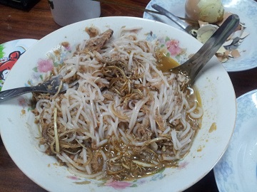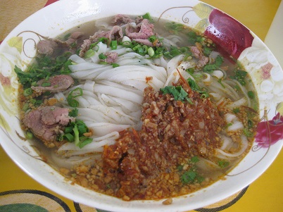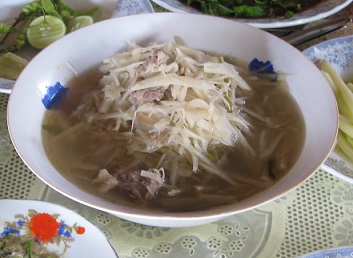 鶏がらスープに、米粉の麺。任地オリジナルのものもあり、それがおいしい。