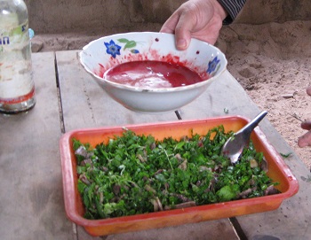 肉を細かく刻んで、いろいろなものと炒めた料理。肉は、豚や鶏、牛、魚などのバージョンがある。