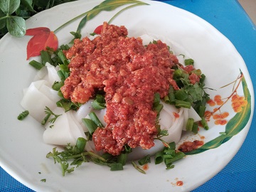 ベトナムで言うフォー。薄めの味で出てくるので、テーブルの上の調味料で自分好みに味をカスタマイズさせる。理想の味を出せたときには、達成感を得られる。