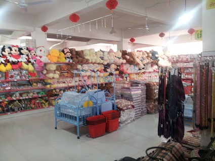 ここでは、生活用品(ホームセンターにあるような品物)や衣類が中心に売られています。