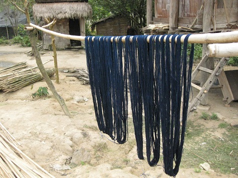 自然素材によって染色が行われる伝統の残るウドムサイの藍染。