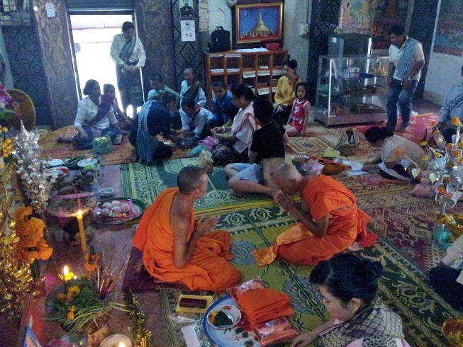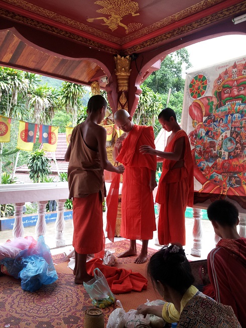 ウドムサイでお世話になっている家族の親族の一人が出家をするということで、その儀式に同席させていただきました。