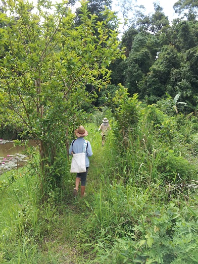 まずは、楽しく談話しながら染色の材料となる植物を採りに行きます。