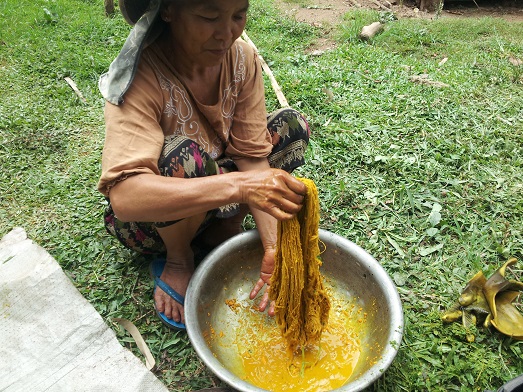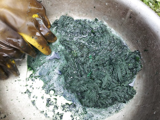 染色植物を採集しに行くところから、一から染色の工程を教えてもらってきました。